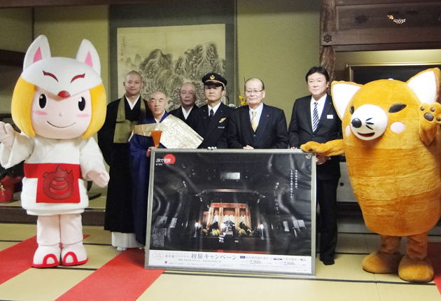 キャンペーンをPRするJR東海、豊川稲荷、観光協会関係者ら(豊川稲荷で)