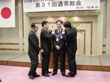 前理事長から理事長リーフを引き継ぐ伊藤理事長