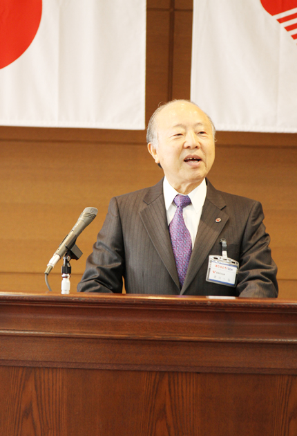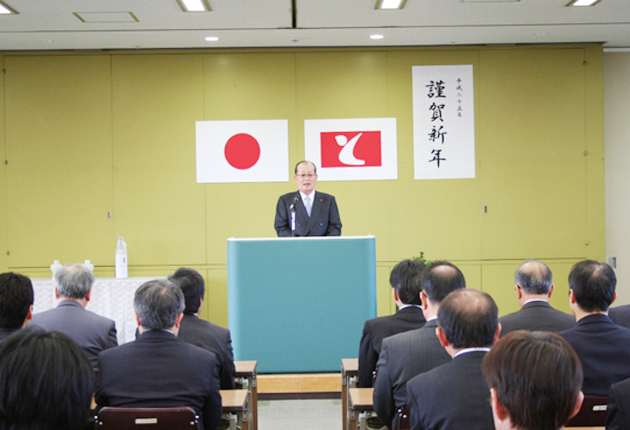 年頭のあいさつをする日比嘉男理事長(豊川信用金庫)