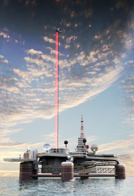 地上から宇宙へとつながるエレベーター(宇宙エレベーター協会提供)