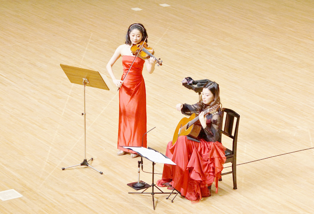村治佳織㊨、川久保賜紀(ヴァイオリン)デュオコンサート演奏の様子