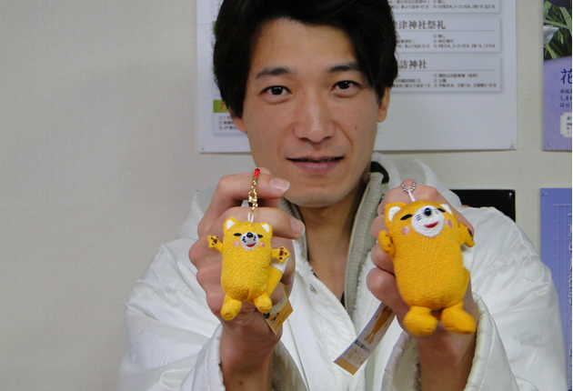 新発売の「いなりん」携帯ストラップ㊧と「いなりん」マスコット)