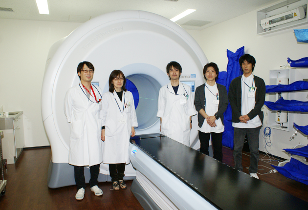 トモセラピーの前で、左から山本技師長ら