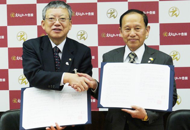 協定書を交わす佐原市長㊧と溝口会長(豊橋市提供)
