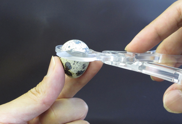 うずら卵カッター開発研究会が、12(平成24)年実用新案を取得した「うずら卵カッター」