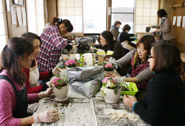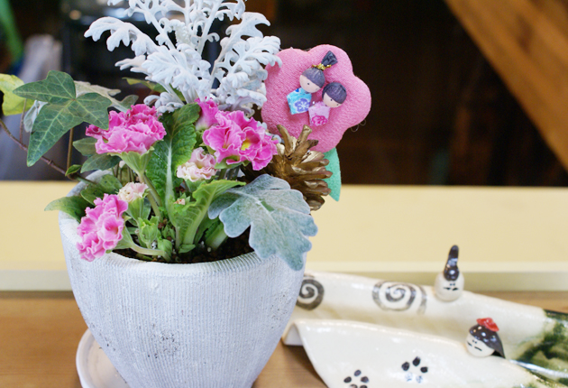 豊橋市小向町の越前そば千曳で7日、女将(おかみ)の疋田ゆかりさん主催「桃の節句に飾る桃色の寄せ植え」が開かれ、小さな子ども連れの主婦や男性など13人が参加して楽しんだ。講師はガーデナーの河合朋代さん。 材料は清楚(せいそ)でかわいい冬の定...