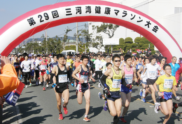 蒲郡市主催の第29回三河湾健康マラソン大会が10日、同市の海岸部一帯に特設したコースで開かれ、県内を中心に約3600人が参加した。宮城県や福岡県など遠方からの参加者もいた。 参加者は、JR・名鉄蒲郡駅に近い市民会館をスタートし、観光名所の...