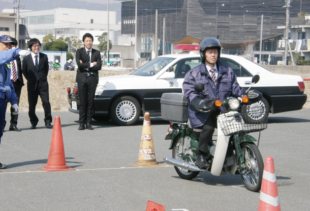 蒲郡署は7日、蒲郡市港町の竹島ふ頭駐車場でバイク研修「ライダースクール」を行い、蒲郡信金の新人職員13人が参加した。 研修で指導するのは県警の第二交通機動隊員で、駐車場に特設した模擬コースで模範走行をしたり、バイク特有の危険回避方法などを...