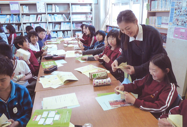 札勘定に挑戦する児童
