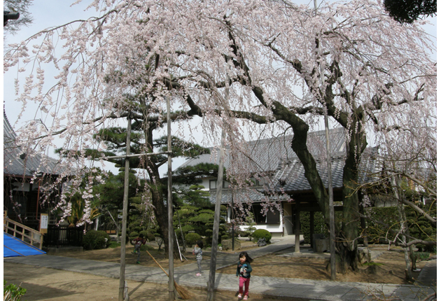 蒲郡市形原町の専称寺のシダレザクラがほぼ満開となり、本格的な春の到来を感じようと、近くの住民たちが見物に訪れている。 ソメイヨシノなどより一歩早く咲くシダレザクラは、花をつけた枝が地面すれすれに垂れ下がり、折からの風に揺れる姿は優雅な舞い...