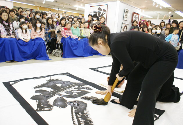 ダウン症の若き女流書家・金澤翔子さん(27)による揮毫(きごう)と、母・泰子さんのトークショーが23日、豊橋市駅前大通のほの国百貨店8階催事場で開かれ、およそ300人の来場者が詰めかけた。 大きな拍手で迎えられた翔子さんは、笑顔いっぱいで...