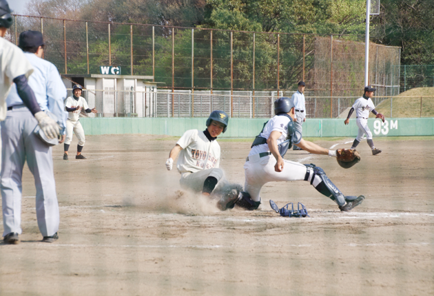 豊橋中央―豊橋工 野選の間に生還し3点目を挙げる(蒲郡球場で)