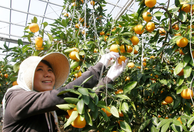 単独農協としては全国一の生産量を誇るブランド果物「蒲郡温室みかん」の初収穫が12日、蒲郡市相楽町のミカン農家であった。 川口智由さん(30)のハウス園地では早朝から収穫作業に取りかかり、父と妹の3人でたわわに実ったミカン約4㌧を収穫。同市...