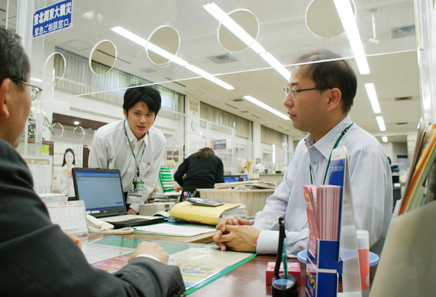 ノーネクタイ姿の職員(蒲郡信用金庫提供)
