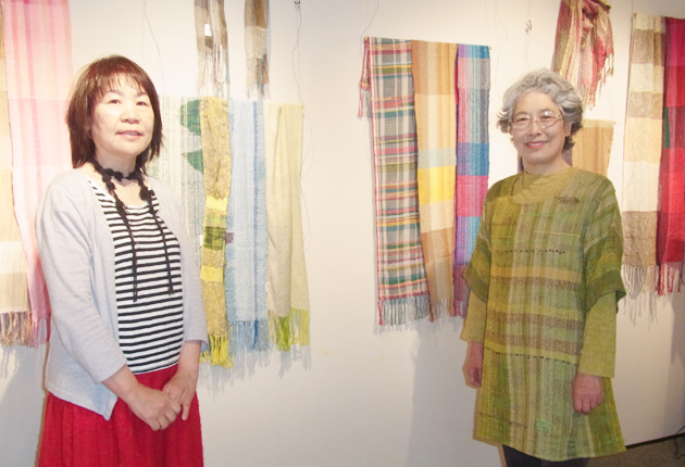 「さをり織り仲間展」出展者の芳賀恵子さん、伊藤富美枝さん