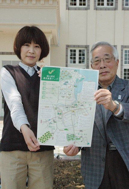 「福江校区歴史散策マップ」を紹介する川崎館長㊨