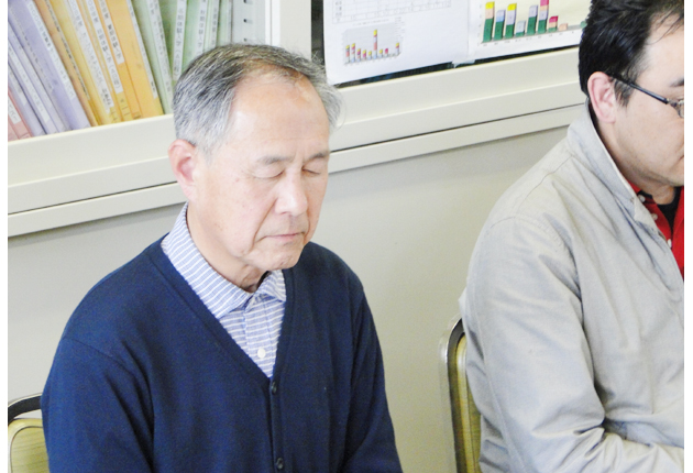沈痛な面持ちで会見に臨む辻田一成校長(9日午前11時ごろ、黄柳野高校で)
