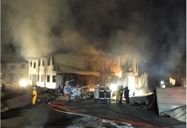 黄柳野高校学生寮全焼。焼け跡から遺体の一部