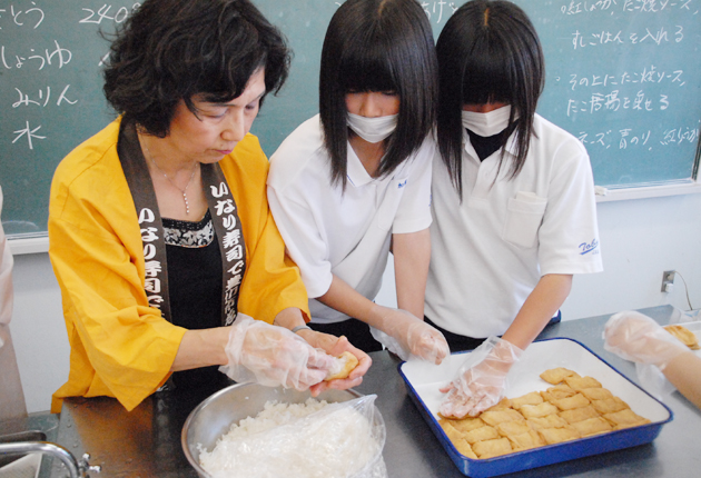 中学生と地域住民絆深める『いなり寿司作り方体験』