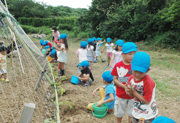 田原でNPOや児童ら作業に汗。ゴーヤは震災被災地へ