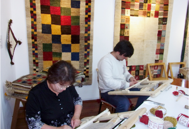遊牧民たちが羊毛で手織り