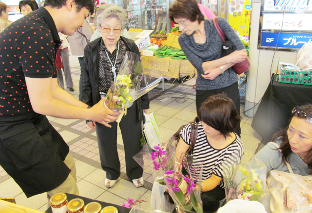 ミニコチョウランが好評。東京交通会館で開かれたマルシェ(提供)