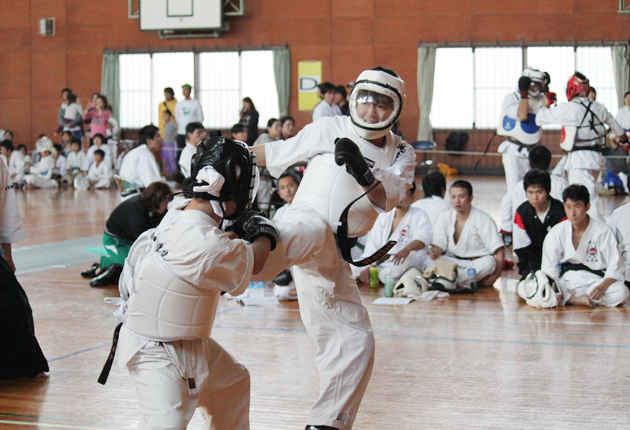 第30回真武門防具付オープン全国空手道選手権大会は21日、豊川市御津体育館で開かれた。3歳から55歳まで各流派の350人が出場。 型、古武道、組手の3部門で各年齢別に、日ごろの練習成果を競った。
