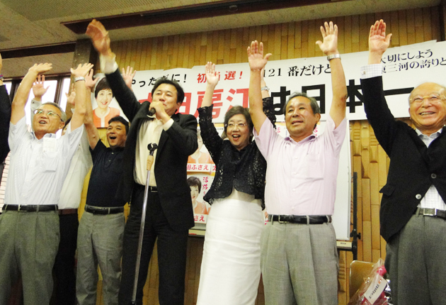 参院選比例代表で初当選した自民党新人の元大阪府知事、太田房江さん(62)の報告会が22日夜、豊橋市職員会館であった。集まった約70人の支援者らとともに全員でバンザイ三唱して当選を喜び合った。 改選121人議席で最後の当選者に辛くも滑り込ん...