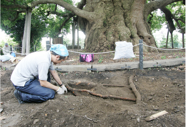 蒲郡市教委は30日、同市清田町の国指定天然記念物「清田の大クス」の根元周辺で樹勢回復のための作業を行った。市博物館職員や地元住民でつくる清田の大クス愛好会のメンバー約10人が参加した。 岐阜大学名誉教授で農学博士の林進さんの指導による作業...