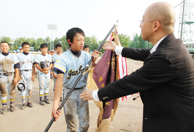 優勝した幸Yに白井収本社社長から東日旗の授与
