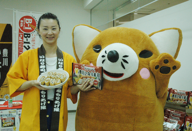 「豊川いなり寿司の素」をPRするマスコットキャラクターいなりん㊨