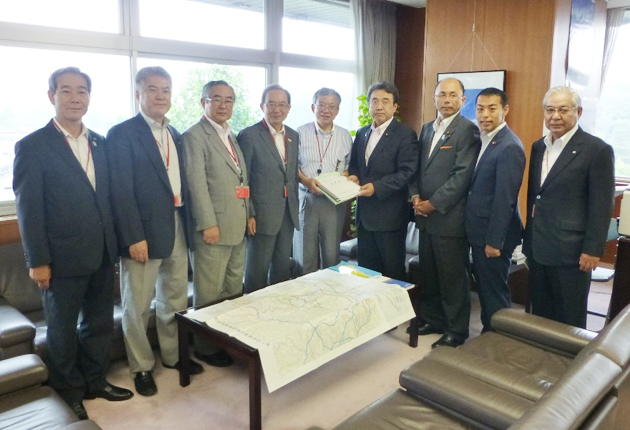 赤澤国交政務官=右から4人目=に要望書を手渡す東三河の首長ら(豊橋市提供)
