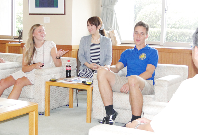 佐原市長に日本の感想を話したアレキサンダー君とオダさん