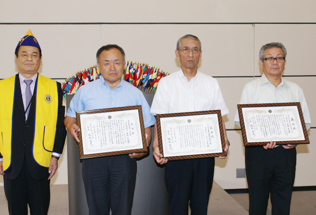 豊川ライオンズクラブ(阪本茂夫会長)は豊川商工会議所で1日、第1216回例会を開き、豊川署の優良警察官表彰を行った。 対象者は、地域課地域第1係・当務係長の土井文雄警部補(61)、同課地域第2係・当務係長の夏目邦彦警部補(60)、交通課交...