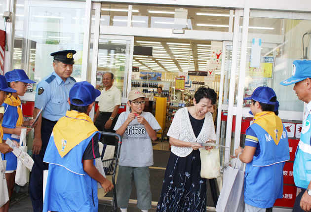 田原市神戸小の防犯少年団と防犯ボランティア、田原署は7日夕、ヤマナカ田原店で、防犯啓発活動を行った。1日から10日までの間、関係機関・団体、自治体、地域住民が一体となって取り組む「夏の安全なまちづくり県民運動」の一環。 防犯少年団ら20人...