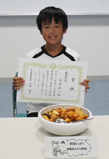 最優秀賞「野菜たっぷり栄養まんてん酢鳥」を考えた渡辺君