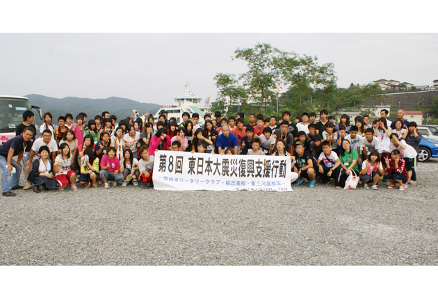 支援活動を終えて記念撮影をする一行(宮城県気仙沼港で)
