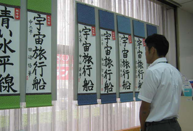 蒲郡信用金庫飯村支店(豊橋市飯村南2、小久保治紀支店長)は、同店ロビーで、地元の書道教室「香苑支部」と「陽華支部」の生徒の作品24点を展示している。30日まで。 「全国七夕競書会」の作品で、小学6年生から中学3年生の書道が中心。いずれも、...