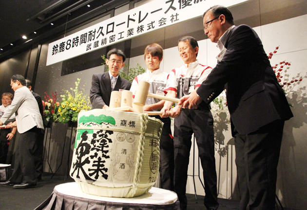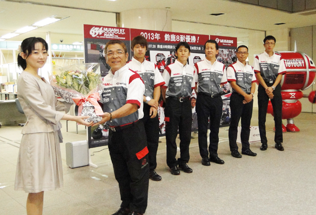 三重県鈴鹿市の鈴鹿サーキットで先月下旬に開かれた「第36回鈴鹿8時間耐久(鈴鹿8耐)ロードレース」で3年ぶり2回目の優勝を飾った「ムサシ・アールティ・ハルク・プロ」の祝賀会が28日夜、豊橋市内であった。翌日にはチーム関係者が市役所に佐原光...
