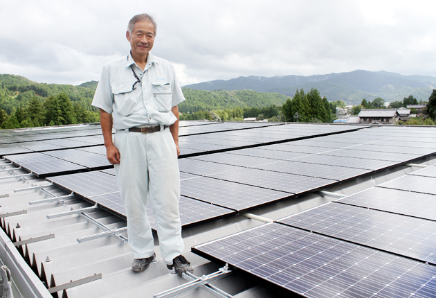 小林代表が作業場屋上に175枚の太陽光パネル設置(新城市出沢で)