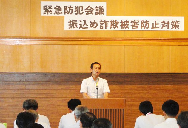 豊橋市内で多額の振り込め詐欺被害が相次いだことから豊橋署は6日、同市松葉町の豊橋市民センターで、金融機関の職員を対象にした「緊急防犯会議」を開催した。県警生活安全総務課の三石敬司課長補佐が、詐欺手口の傾向や防止策などを説明した。 同市内の...