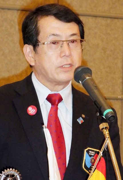 スピーチを行う田中正規ガバナー