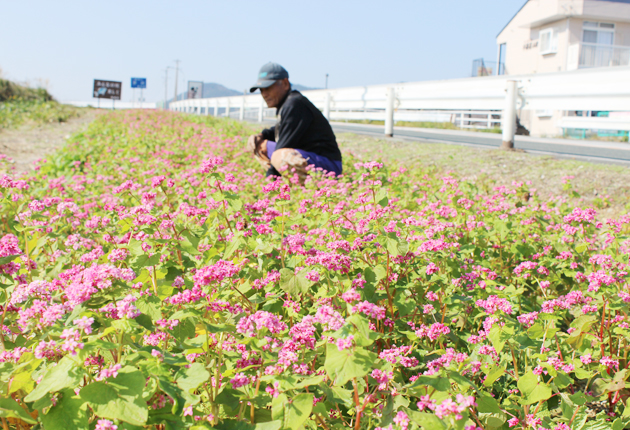 全国に130ルートある「日本風景街道」のひとつにあたる「渥美半島菜の花浪漫街道」(田原市神戸町の国道259号沿い)で、赤いソバの花が見頃を迎えている。ソバの花を同所に植えたのは初めて。 観賞用のソバでチベット原産の短日性植物。品種は「高嶺...