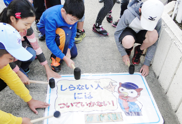 県道路標識・標示業協会が啓発シートを寄贈/松葉小防犯少年団が設置 意識高める