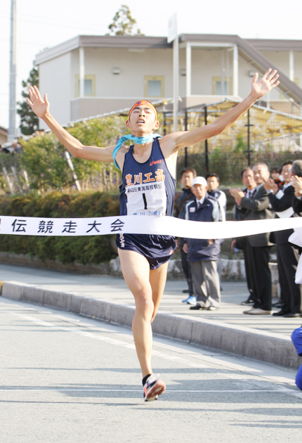 連覇のフィニッシュを決める豊川工男子最終走者の田中智也