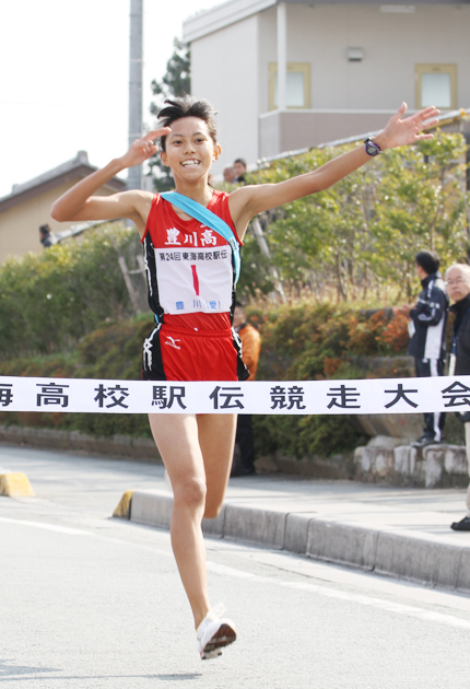 7連覇のフィニッシュテープを切る豊川女子最終走者の今井優