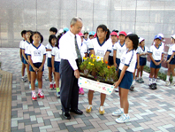 蒲郡市豊岡町の蒲郡東部小学校の3、4年生38人が12日、同市平田町の蒲郡市民病院を訪れ、放課後に育てたコスモスのプランター5鉢を贈った。小学生らを対象にした啓発運動「人権の花」の一環。 贈呈式であいさつした、児童らの代表は「暑い日や台風の...
