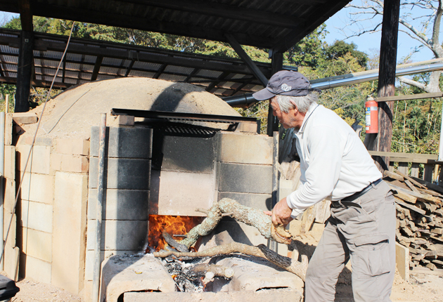 炭焼き窯に火をつける鈴木代表