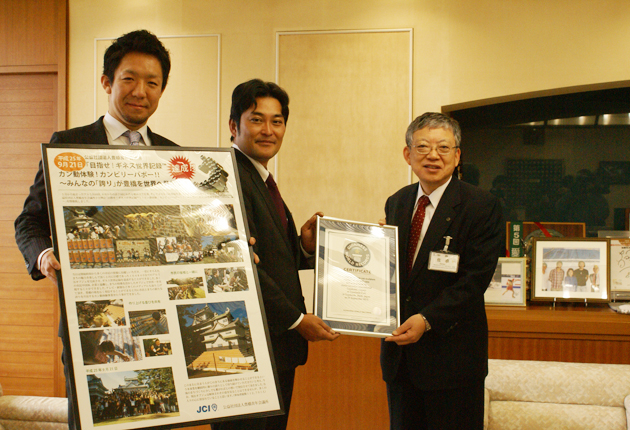 豊橋青年会議所の中澤慎介理事長(39)と、同会議所まちの価値創造委員会の伊藤伸補委員長(33)は13日、豊橋市役所を訪れ、9月にギネス世界記録に認定された「世界最大のアルミ缶オブジェ」(吉田城鉄櫓)の「ギネス世界記録公式認定証」と、「事業...