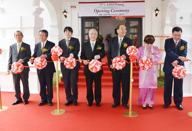 豊橋技科大ペナン校の開校式。中央が榊学長